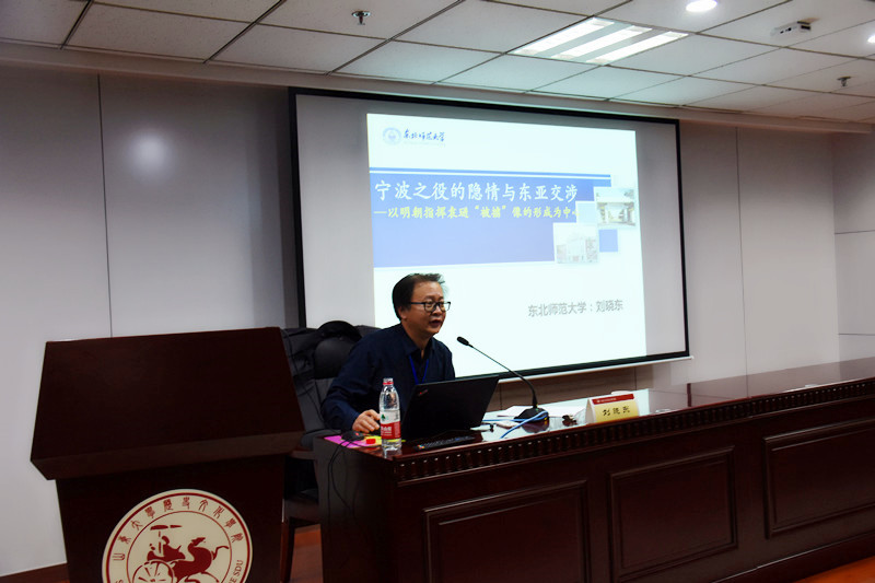 4月20日晚,东北师范大学历史文化学院院长刘晓东教授做客山东大学历史文化学院,于知新楼A1017为同学们带来了一场名为“宁波之役的隐情与东亚交涉——以明朝指挥袁琎‘被掳’像的形成为中心”的专题讲座。讲座由赵文坦教授主持,学院近百名本科生和研究生聆听了讲座。