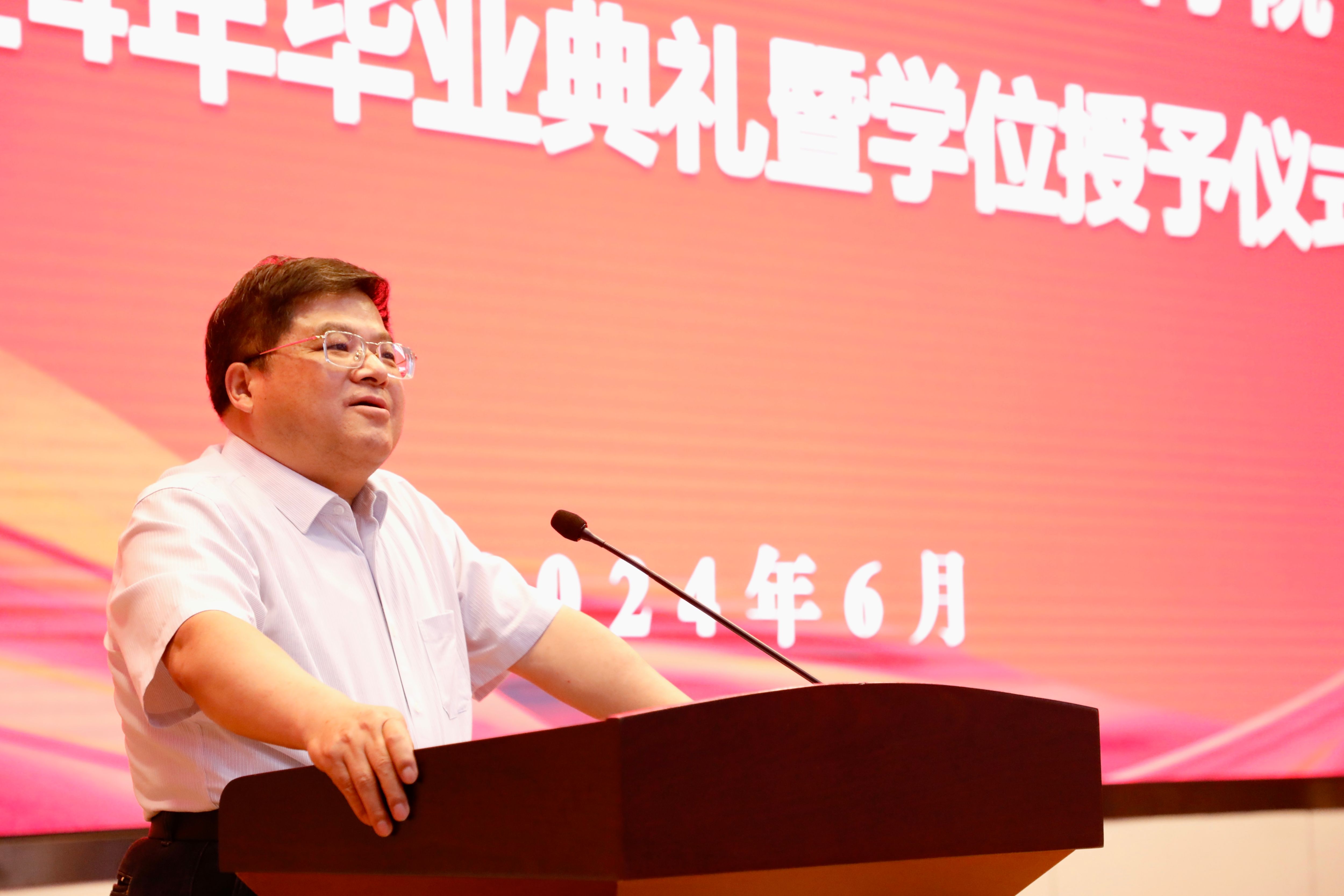 仪式在庄严的国歌声中拉开帷幕。李功华宣读《山东大学关于表彰2024届优秀毕业生的决定》,王芬、代国玺为获评“山东省优秀毕业生”荣誉称号的毕业生代表颁发证书。
